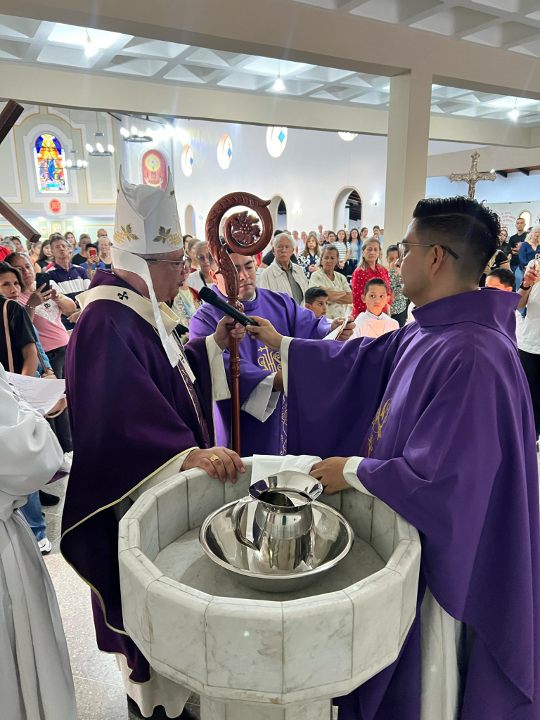 La toma de posesión y la eucaristía de bienvenida estuvieron presididas por Monseñor Helizandro Terán, arzobispo metropolitano de Mérida, que entregó de manera formal las llaves del templo al nuevo párroco.