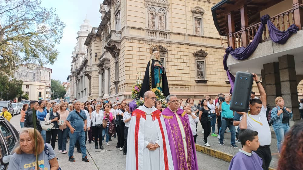Finalizada la Eucaristía, las mujeres asistentes cargaron en procesión a la Virgen Dolorosa. Durante el recorrido por algunas calles del centro de la ciudad, se realizaron siete altares en los que se meditó sobre cada uno de los dolores que padeció la Virgen María, Madre de Jesús.