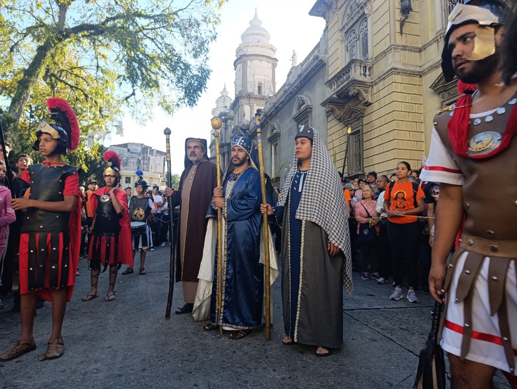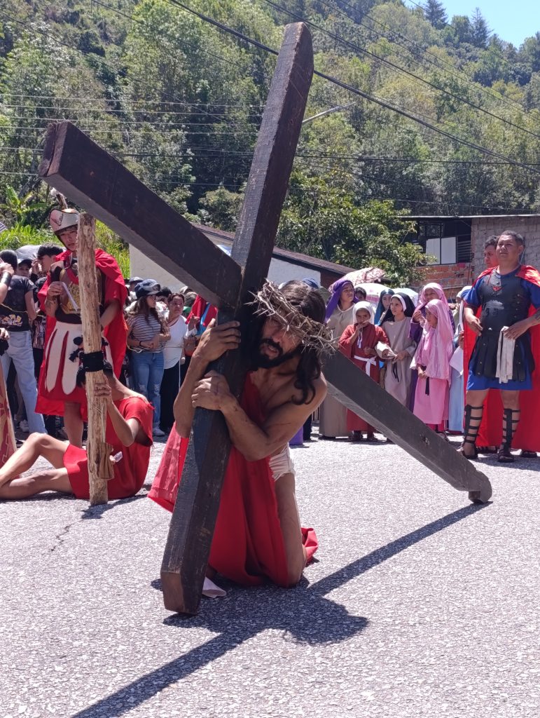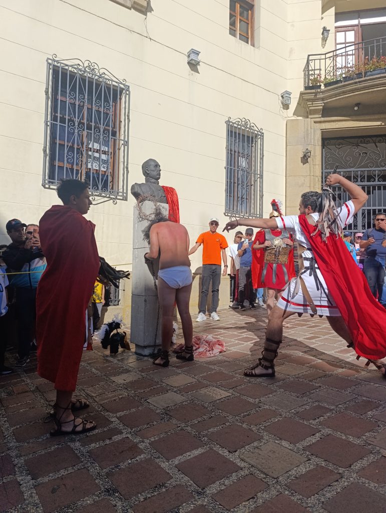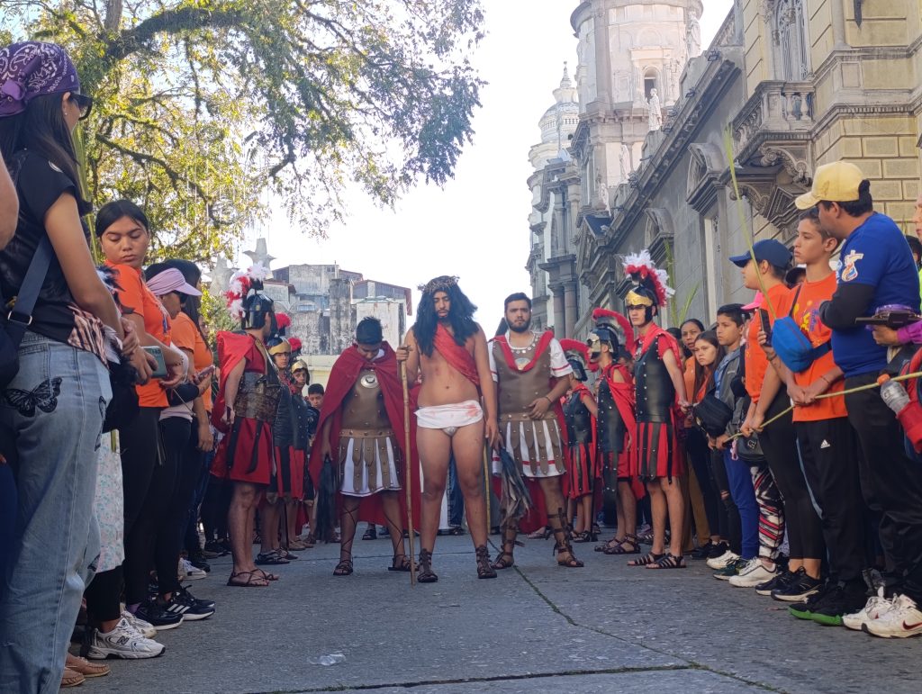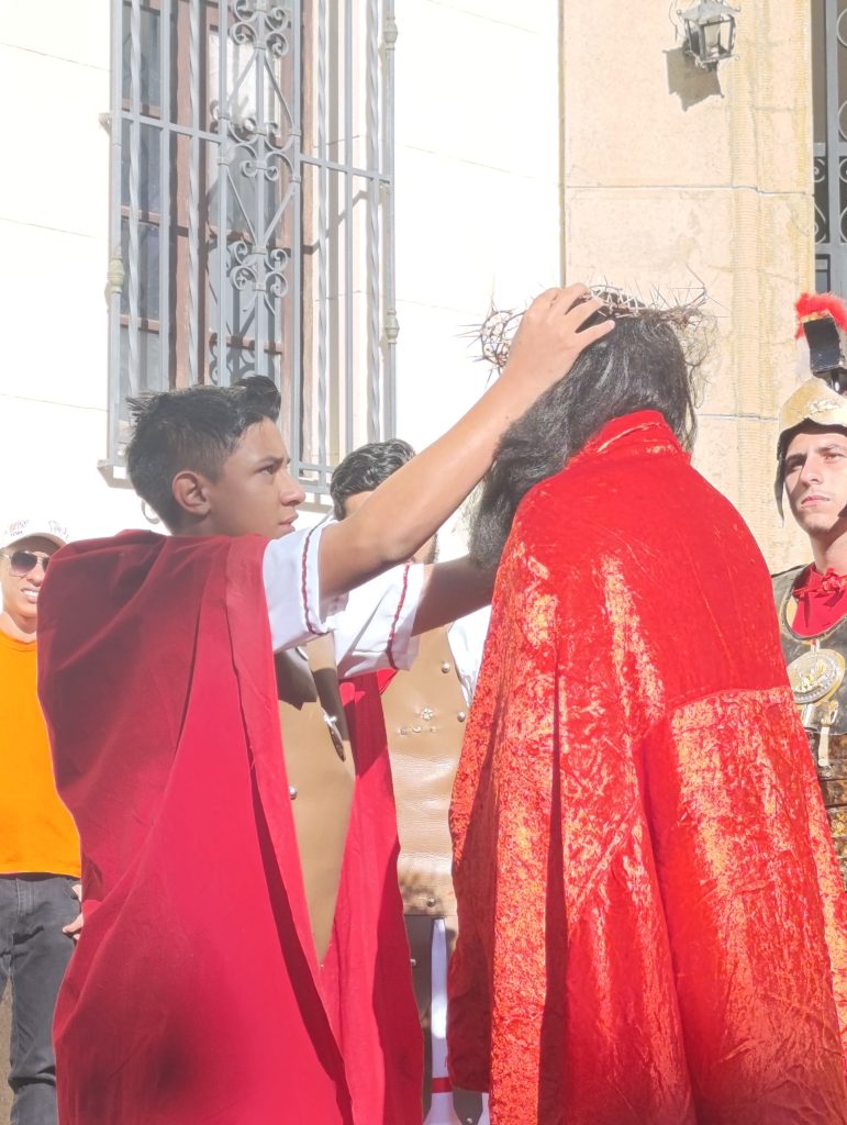 Durante las 14 estaciones que conforman el viacrucis, diferentes grupos de Pasión Viviente de varias parroquias de Mérida y Ejido, escenificaron los pasajes bíblicos que llevaron a Jesús desde su condena frente a Herodes y Pilatos hasta su muerte en la cruz.