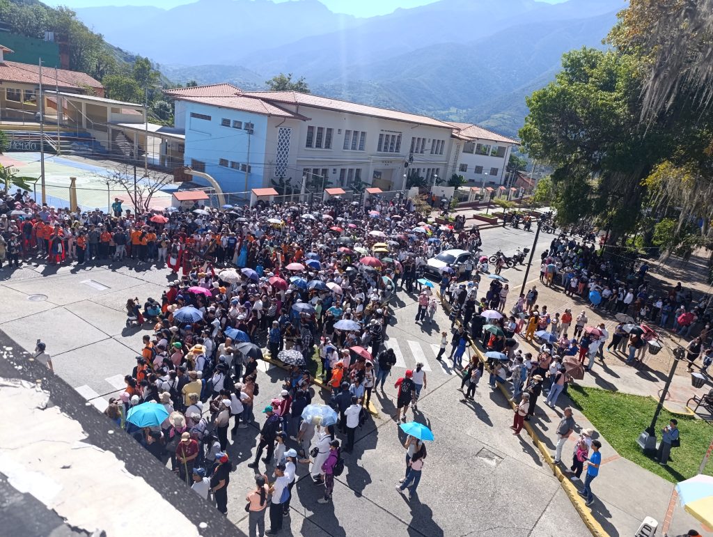 El recorrido empezó pasadas las 8 de la mañana; la feligresía bajó por la Avenida Bolívar (Av. 4), cruzó en la calle 25, para posteriormente subir por la Avenida 3, continuar por la Avenida Universidad hasta llegar a la calle principal de los Chorros de Milla, subió hasta la ramificación que conduce al Parque Zoológico Chorros de Milla, desviándose al Complejo Deportivo Dr. Pedro Rincón Gutiérrez de la ULA, donde Monseñor Helizandro Terán presidió la eucaristía.