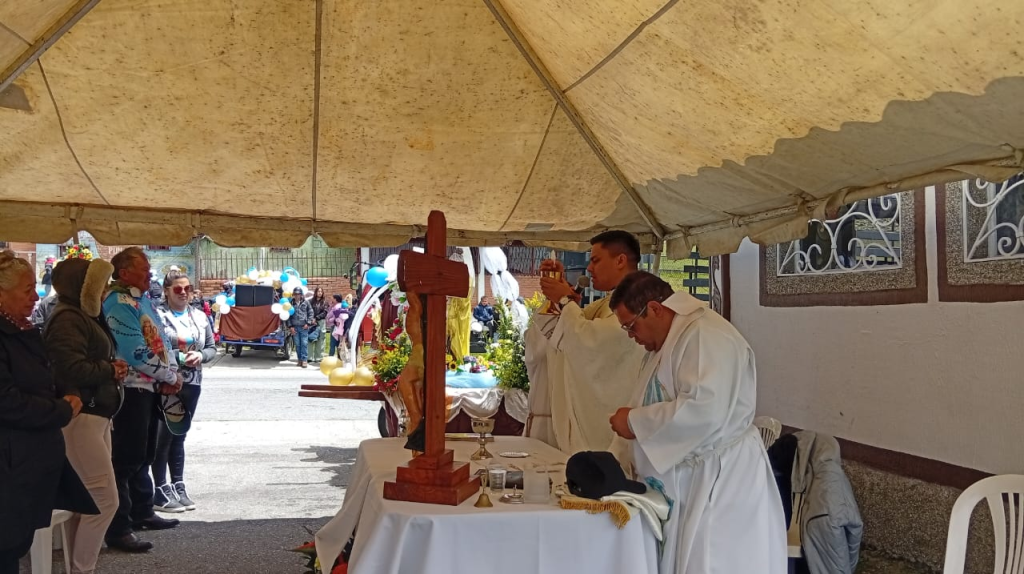El padre Guzmán Contreras —párroco de San Rafael— realizó el recorrido con Jesús Sacramentado en sus manos, en un gesto de fe y consuelo. Lo acompañó el padre Abdón Araque, de la parroquia Santa Lucía de Mucuchíes, reforzando el mensaje de unidad entre las parroquias.