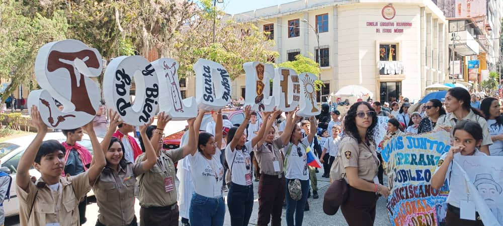 Previo a la misa, se realizó la peregrinación jubilar desde Belén hasta la Catedral, encabezada por la Cruz del Jubileo, la reliquia de la Madre Carmen Rendiles y la imagen de San Francisco de Asís.