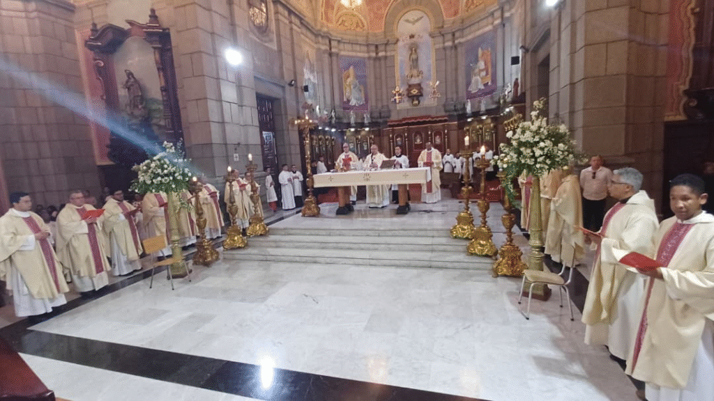 La solemne misa se llevó a cabo en la Basílica Menor Catedral Inmaculada Concepción y fue presidida por Monseñor Helizandro Terán, Arzobispo Metropolitano de Mérida, acompañado por los sacerdotes José Gregorio Méndez, Vicario General; Jean Carlos Loaiza, Vicario de Pastoral, entre otros integrantes del clero merideño.