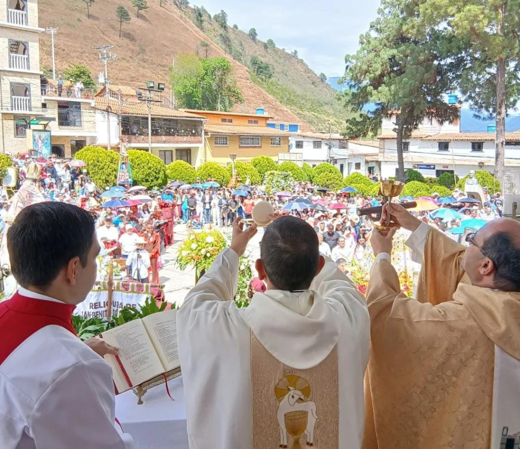 A pocos kilómetros, en Timotes, municipio Miranda, la celebración tomó un aire distinto pero igualmente vibrante. La misa en el Santuario Diocesano reunió a fieles y autoridades, seguida de una procesión que recorrió las calles con comparsas, bailes y oraciones.
