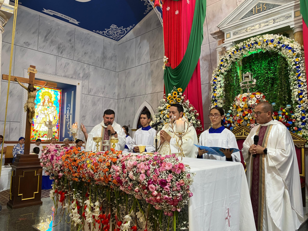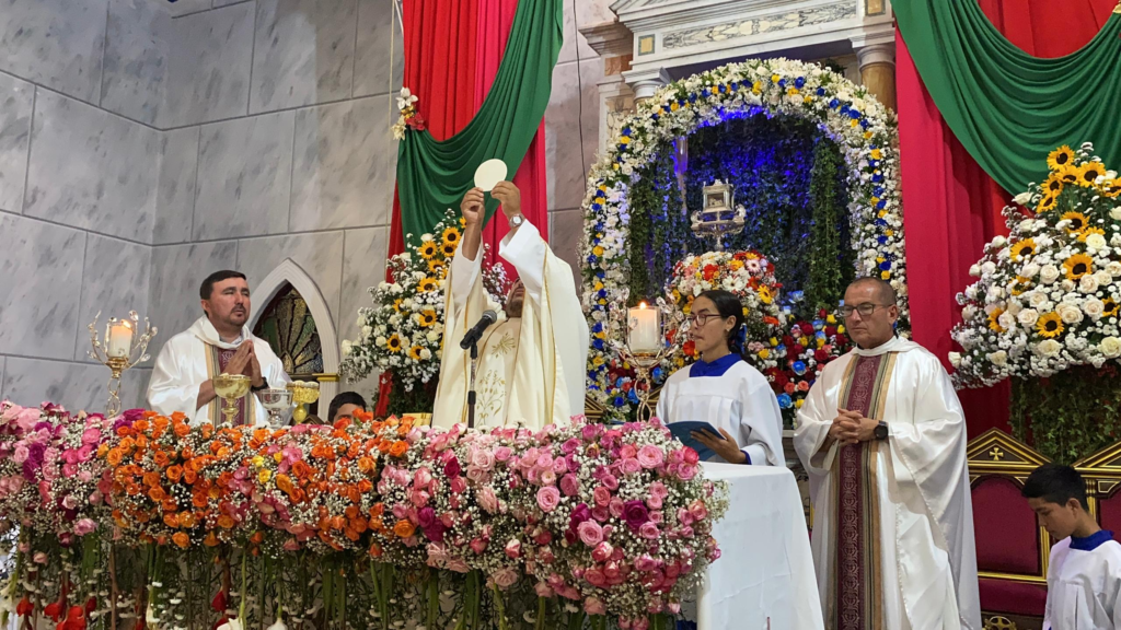 Agregó que el altar, bellamente ornamentado por el equipo de voluntarios de la parroquia, sirvió de marco perfecto para la veneración de la sagrada imagen, la cual permaneció cercana al pueblo durante toda la liturgia.