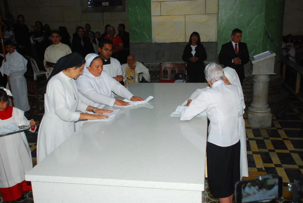 El rito de consagración incluyó la aspersión con agua bendita, en recuerdo del Bautismo y como signo de purificación; la oración de las Letanías de los Santos, invocando la intercesión celestial por la Iglesia; y la colocación de la reliquia de Santa Carmen Rendiles en el altar.