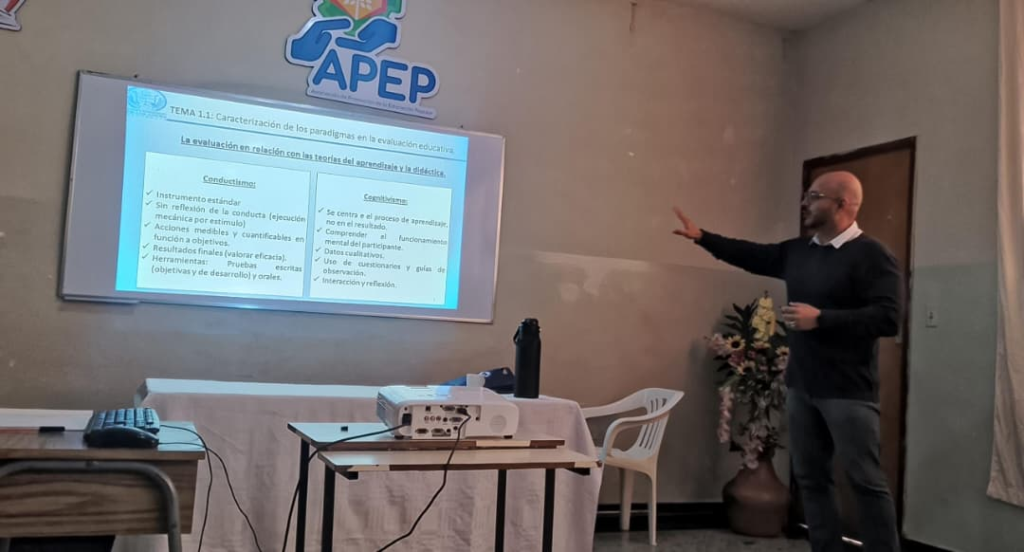 Durante su intervención, el académico compartió experiencias y reflexiones pedagógicas orientadas a fortalecer los procesos de enseñanza en los centros de formación adscritos a APEP.