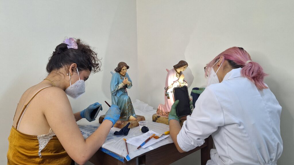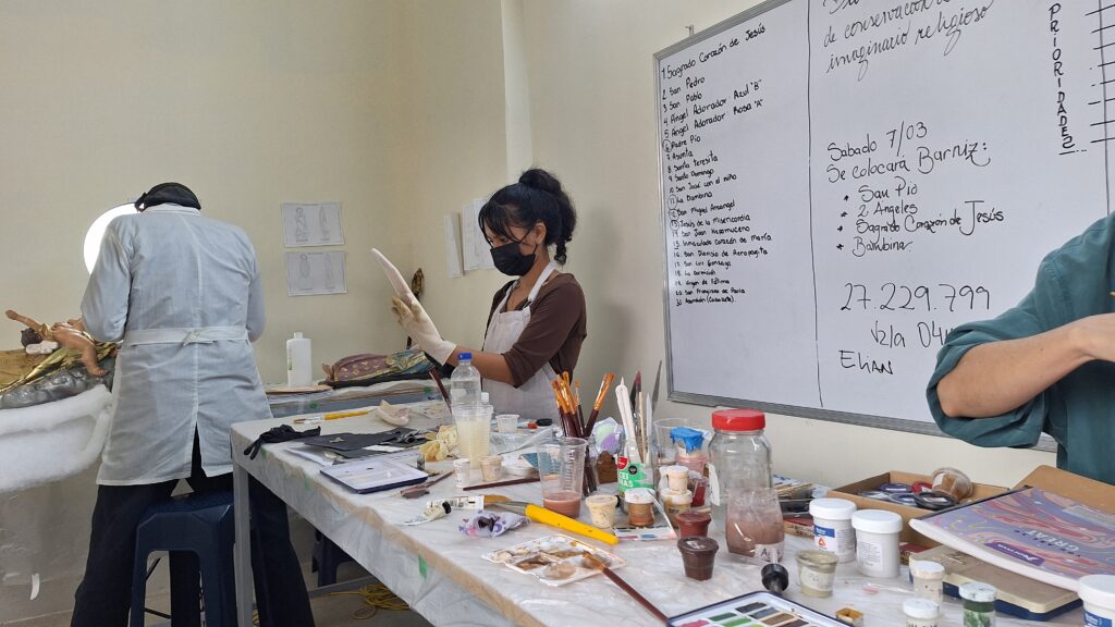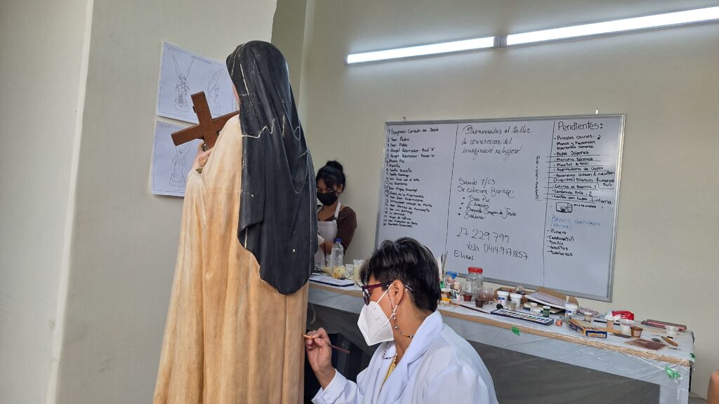 El taller nació con un objetivo claro: atender las imágenes que, además de ser piezas artísticas e históricas, siguen cumpliendo su función original dentro del culto.
