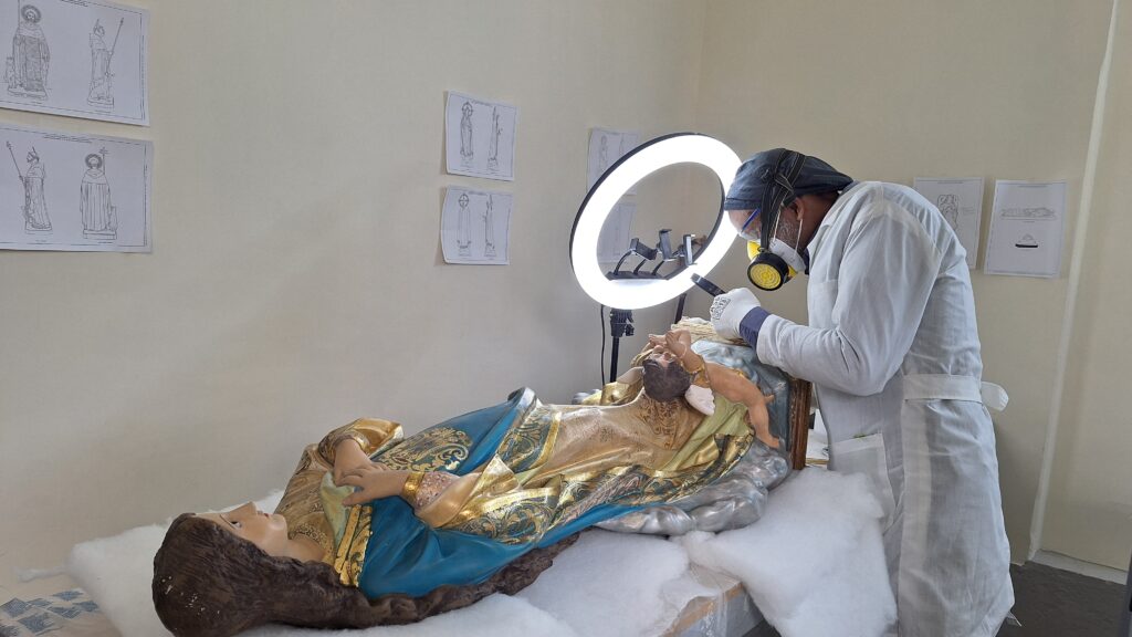 (13-03-2026) En una sala silenciosa, lejos de la mirada habitual de los fieles, varias imágenes religiosas descansan sobre mesas de trabajo. Algunas conservan rastros de hollín en el rostro; otras exhiben pequeñas fracturas o dedos ausentes. Son huellas de décadas, de fe, devoción y contacto humano.