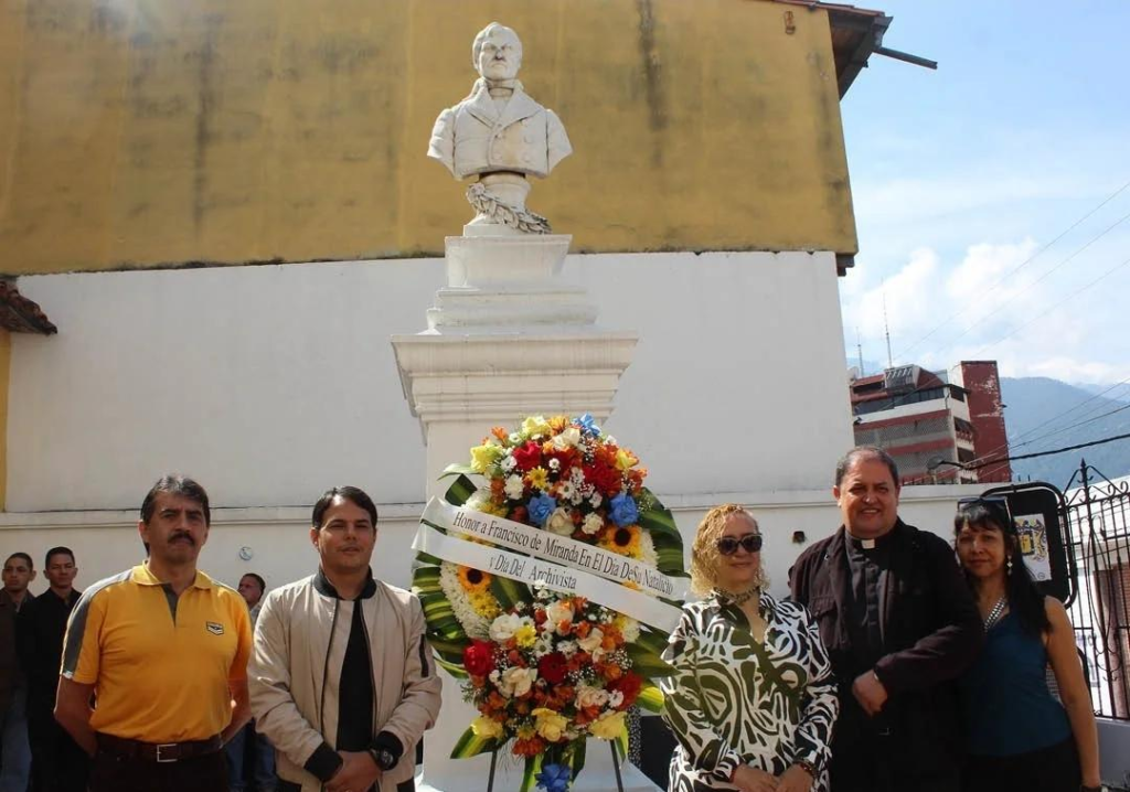 Posteriormente, se realizó una ofrenda floral en honor al prócer independentista Francisco de Miranda, en la plazoleta que lleva su nombre, reconociendo su legado como precursor de los archivos venezolanos.