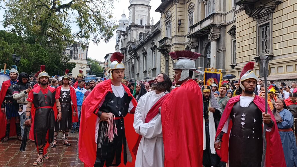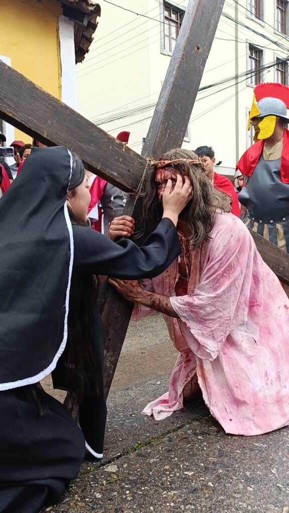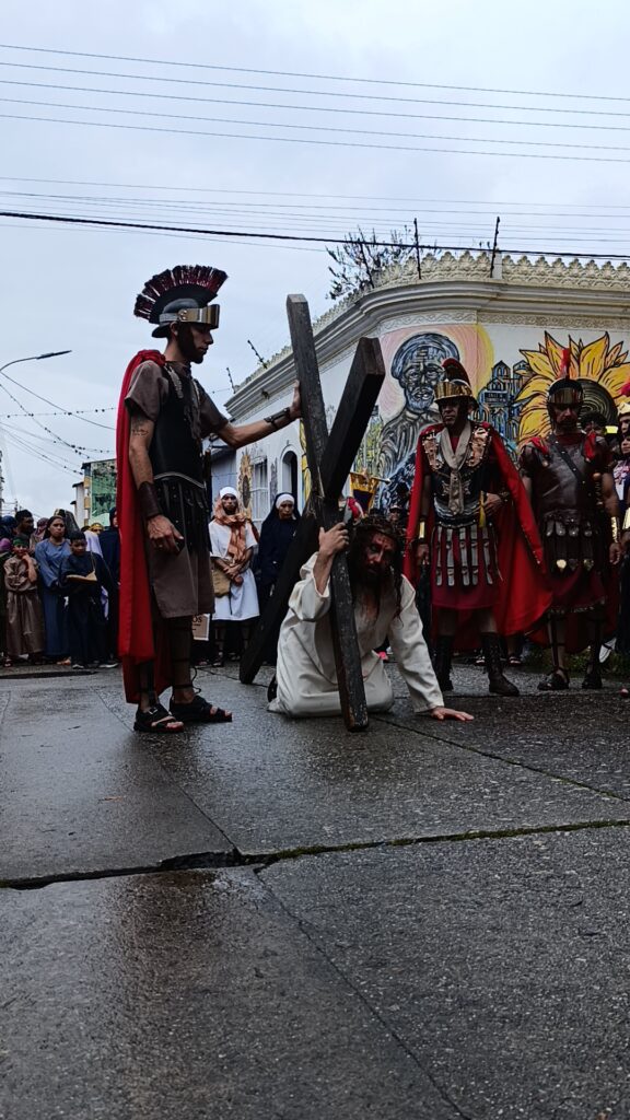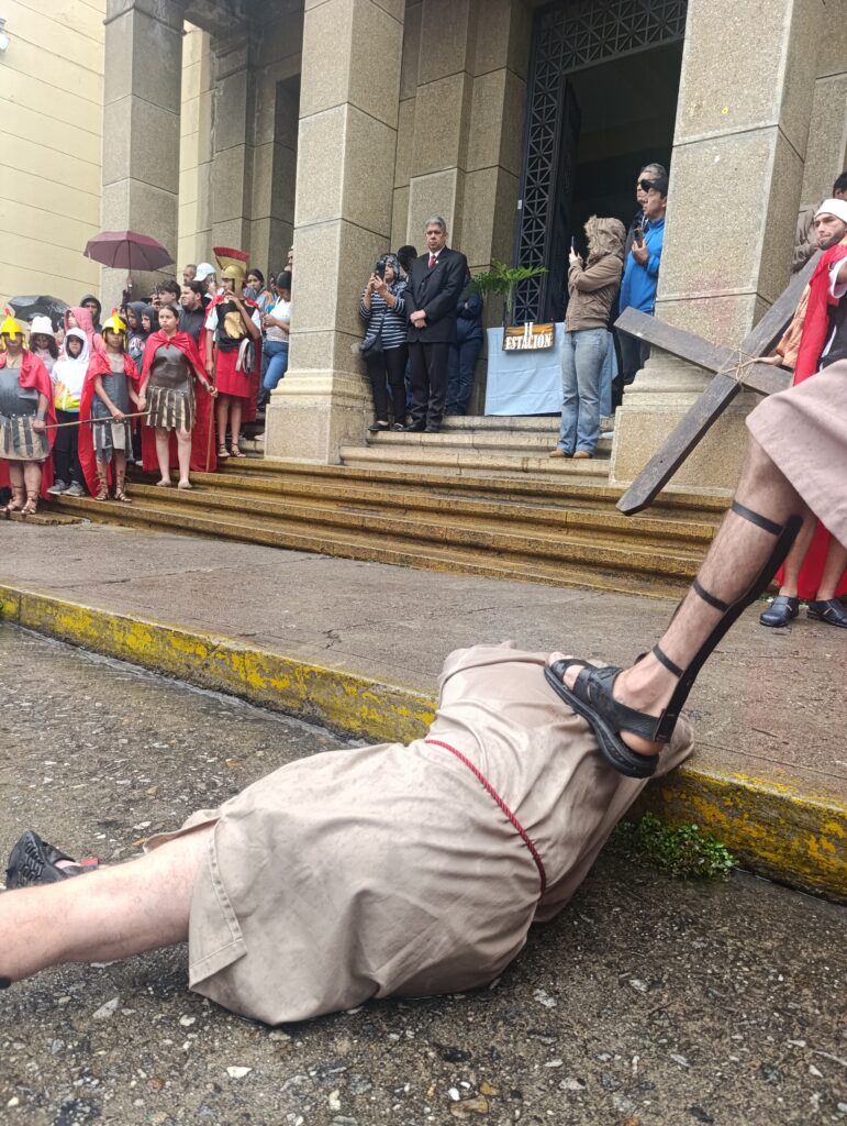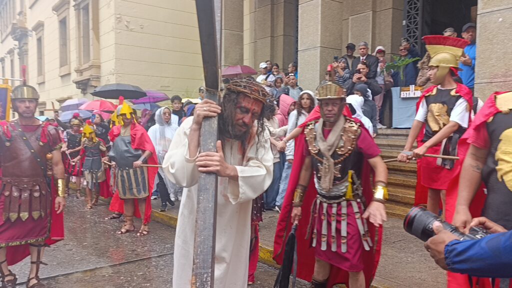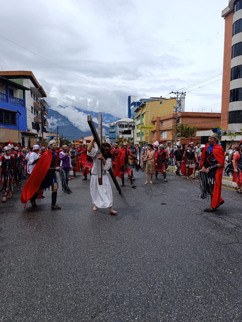 A pesar del clima, el pueblo merideño acompañó durante todo el recorrido con cánticos y oraciones, recordando que el camino de la Cruz no termina en la muerte, sino en la esperanza de la resurrección.