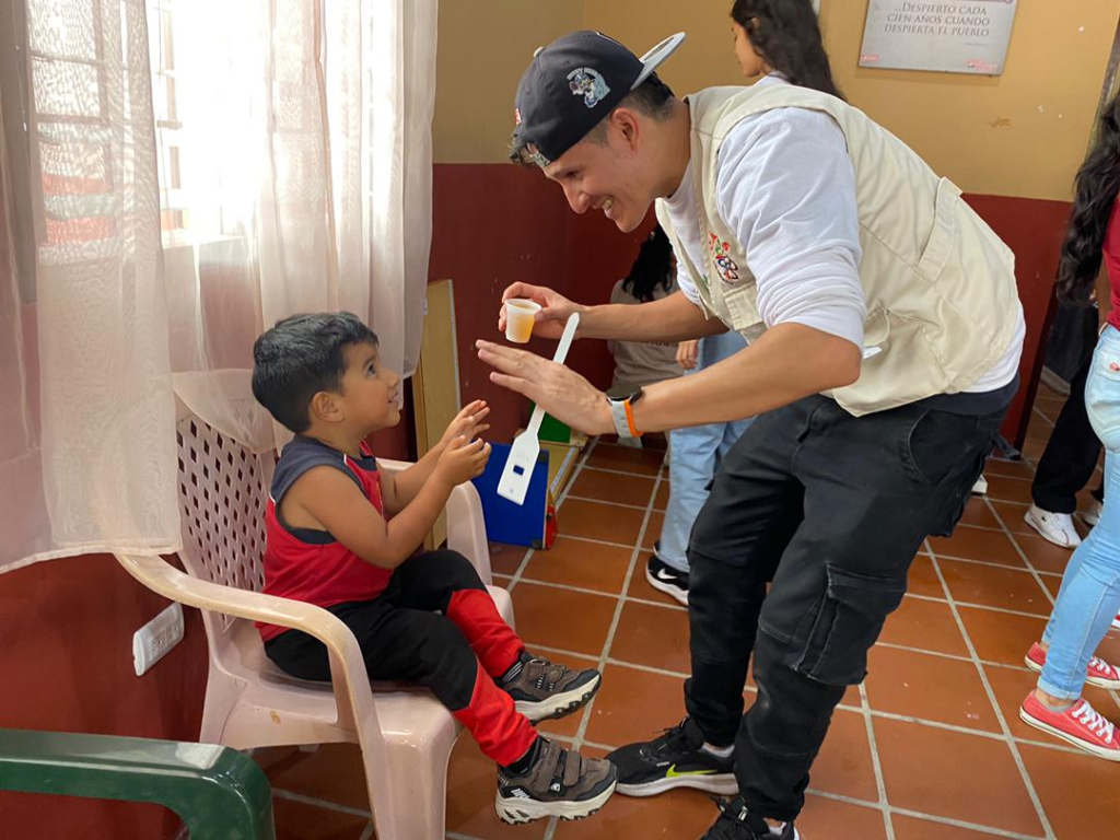 Durante la jornada se realizó un tamizaje integral en el marco del proyecto SAMAN, que incluyó la evaluación nutricional de los niños, así como la atención a mujeres embarazadas y en período de lactancia. De acuerdo con los resultados obtenidos, se brindó acompañamiento mediante la entrega de micronutrientes y suplementación nutricional, favoreciendo el bienestar de los beneficiarios.